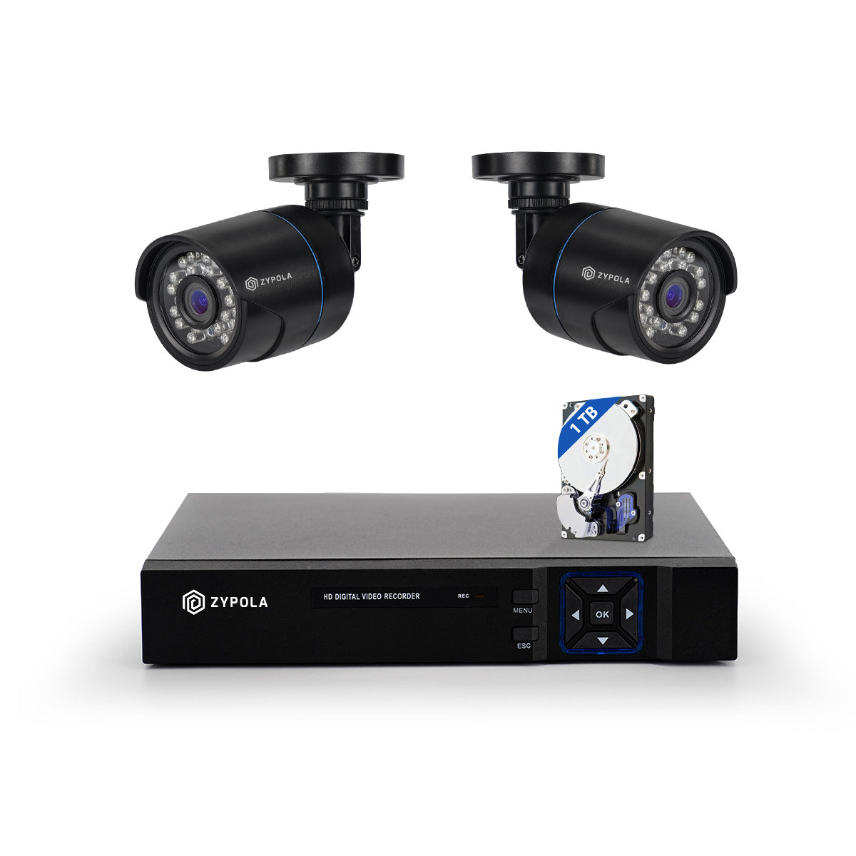 Kit De 2 Cámaras De Vigilancia Con DVR De 4 Canales, Preinstalado Con Disco Duro De 1TB, 1080p Alta Definición, Visión Nocturna De 130 Pies, Gran Angular De 105°, Acceso Remoto, IP66 Impermeable