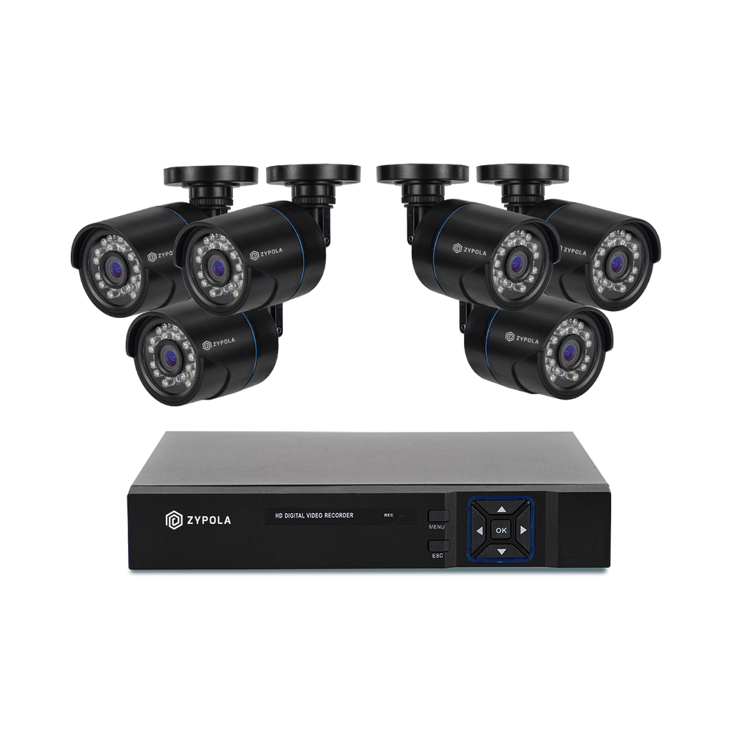 Kit De 6 Cámaras De Vigilancia Con DVR De 8 Canales, 1080p Alta Definición, Visión Nocturna De 130 Pies, Gran Angular De 105°, Acceso Remoto, IP66 Impermeable